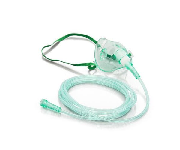 Маска НЕРЕВЕРСИВНАЯ кислородная лицевая р. L, для взрослых с носовым зажимом и трубкой 2м, Юки