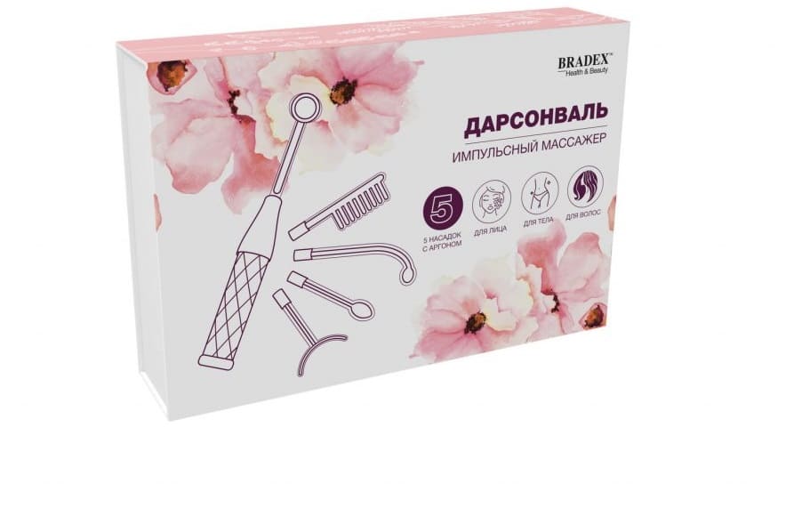 Дарсонваль импульсный массажер для тела, лица, волос, 5 насадок с Аргоном Bradex