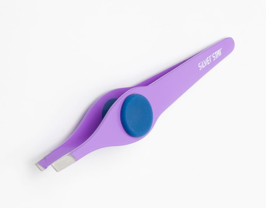 9102 АТ Пинцет косой, фиолетовый, силиконовая вставка, Classic, Сильвер Стар