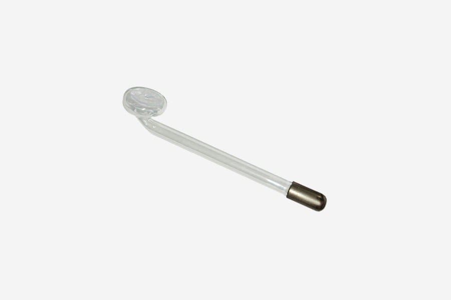 - конструкция загнута под прямым углом перед рабочей поверхностью, что позволяет применять насадку для дарсонвализации труднодоступных мест;