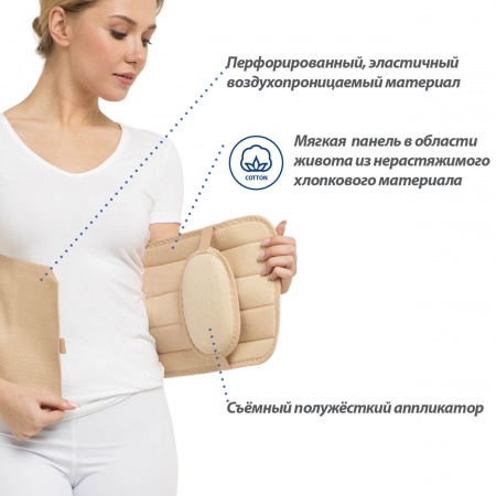 440Б Бандаж грыжевой на брюшную стенку со съемным полужестким аппликатором, 20см, бежевый