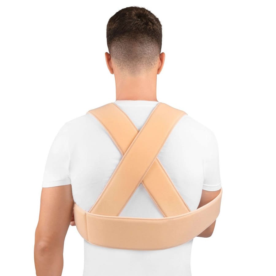 - Обеспечивает иммобилизацию плеча, оказывает поддержку руки с фиксацией к туловищу.